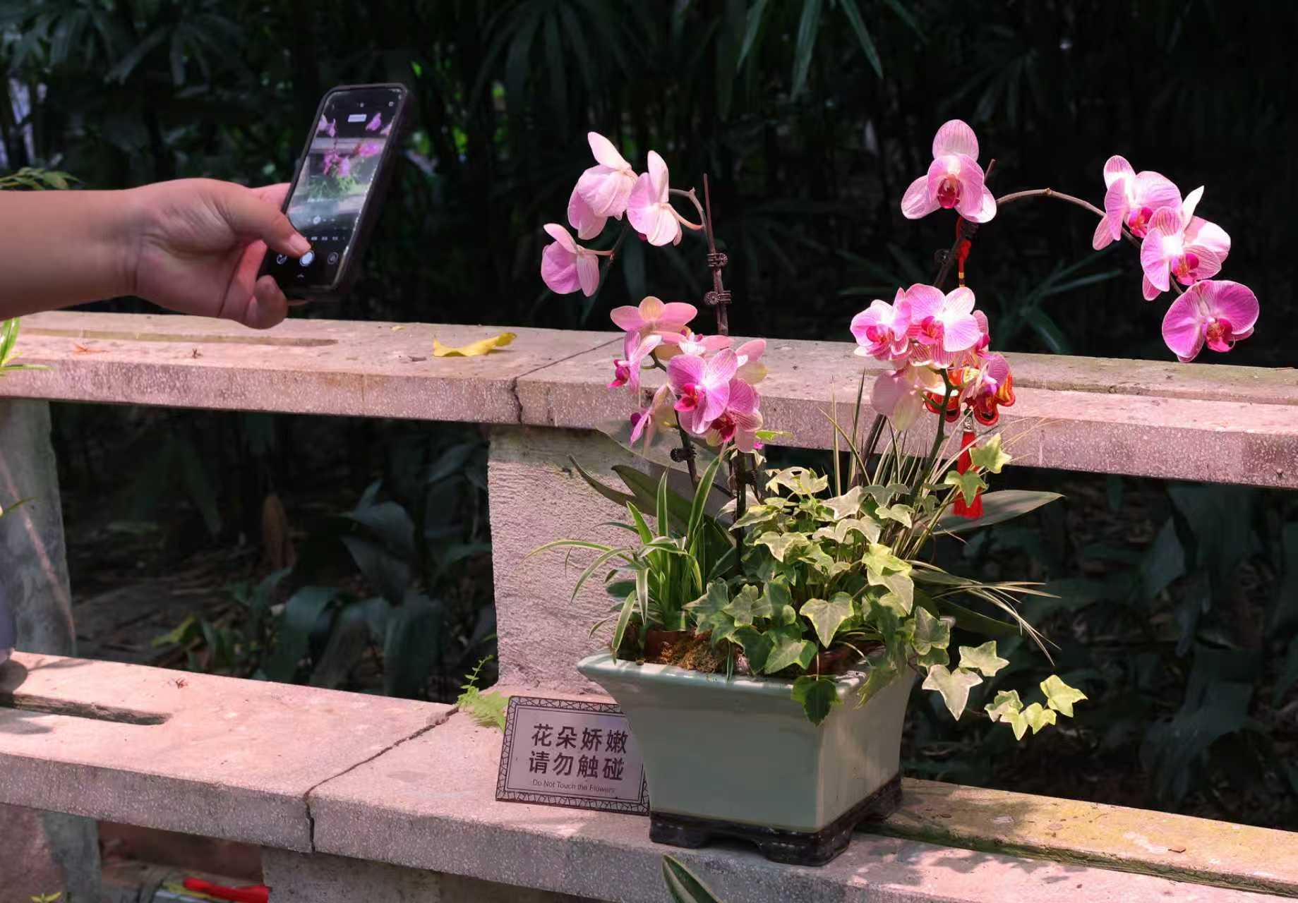 首创“兰径寻宝・书画奇缘”趣味玩法,在广州兰圃的神秘区域放置寻宝信物,对应著名作家李娟、马伯庸的亲笔签名图书及谢伟国、邓国生、李国樑等书画名家字画,成功寻得并参与互动的游客将获赠寻宝图书、字画,惊喜感拉满。更有簪花郎“兰朋友”小缘在园内惊喜亮相赠送鲜花、书签,邀请市民游客在花香书香中邂逅越秀最美四月天的人文浪漫。