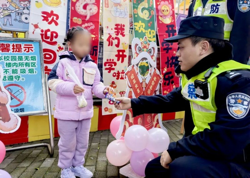 这是叔叔今天专门准备的糖果,但是要在幼儿园里表现好的小朋友才能吃,你可以做到吗?小女孩点了点头,民警在得到小女孩家长的同意后,将糖果递给了小女孩,随后小女孩开心地走进了幼儿园。