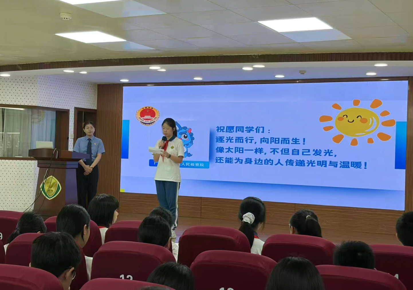 为进一步加强未成年人法治教育,从源头预防校园欺凌现象,护航青少年身心健康,2026年4月13日,六榕街道携手越秀区人民检察院、六榕街司法所,走进知用学校,为全校师生带来一堂以“逐光而行·检护成长”为主题的法治教育课。